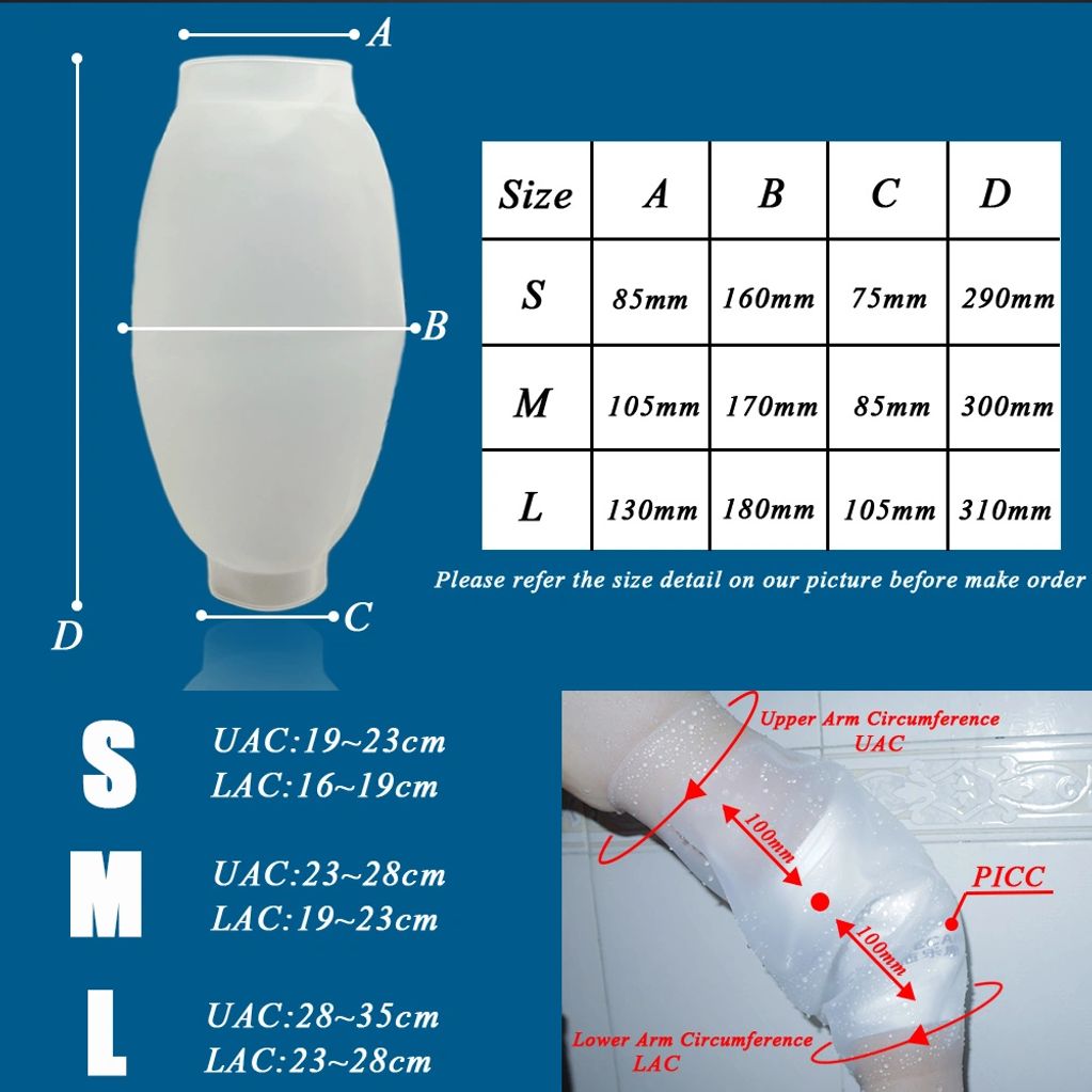 Waterproof shower cast cover to keep dressing and wound dry. Do not fumble with plastic bags and tape to make a cast waterproof.